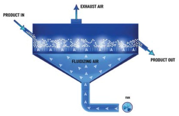 The premise behind fluid beds for cooling and heating is that large volumes of air are used to both fluidize the material ⁠— required to enable the product to flow ⁠— and to act as the heat transfer medium in order to add or removing heat from the process.