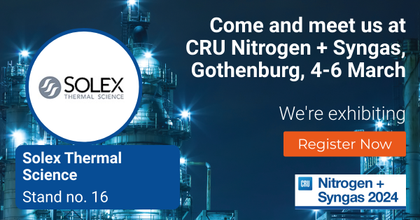 Solex Thermal Science will be participating in the 2024 CRU Nitrogen + Syngas Conference, hosted in Gothenburg, Sweden, March 4-6.